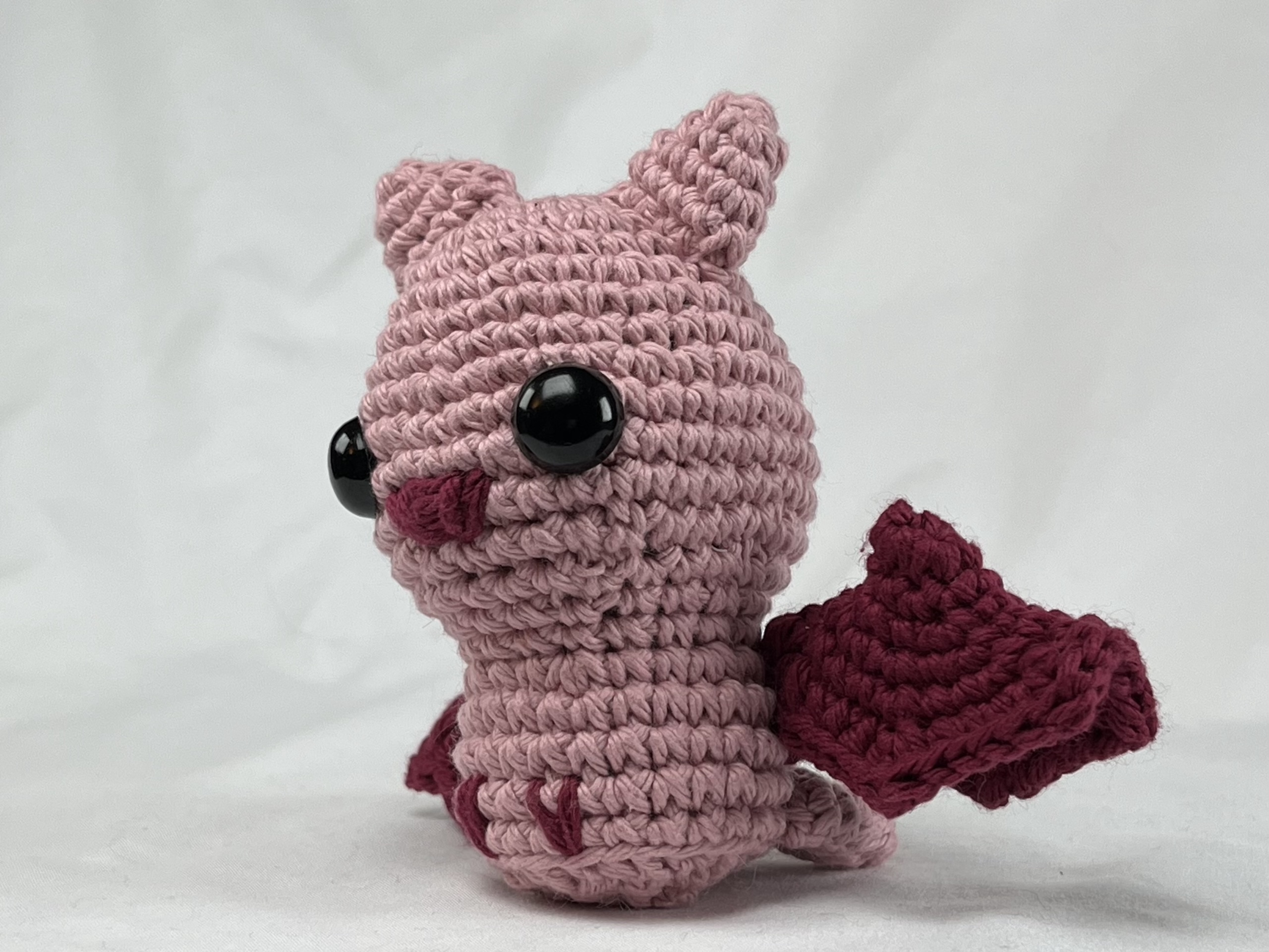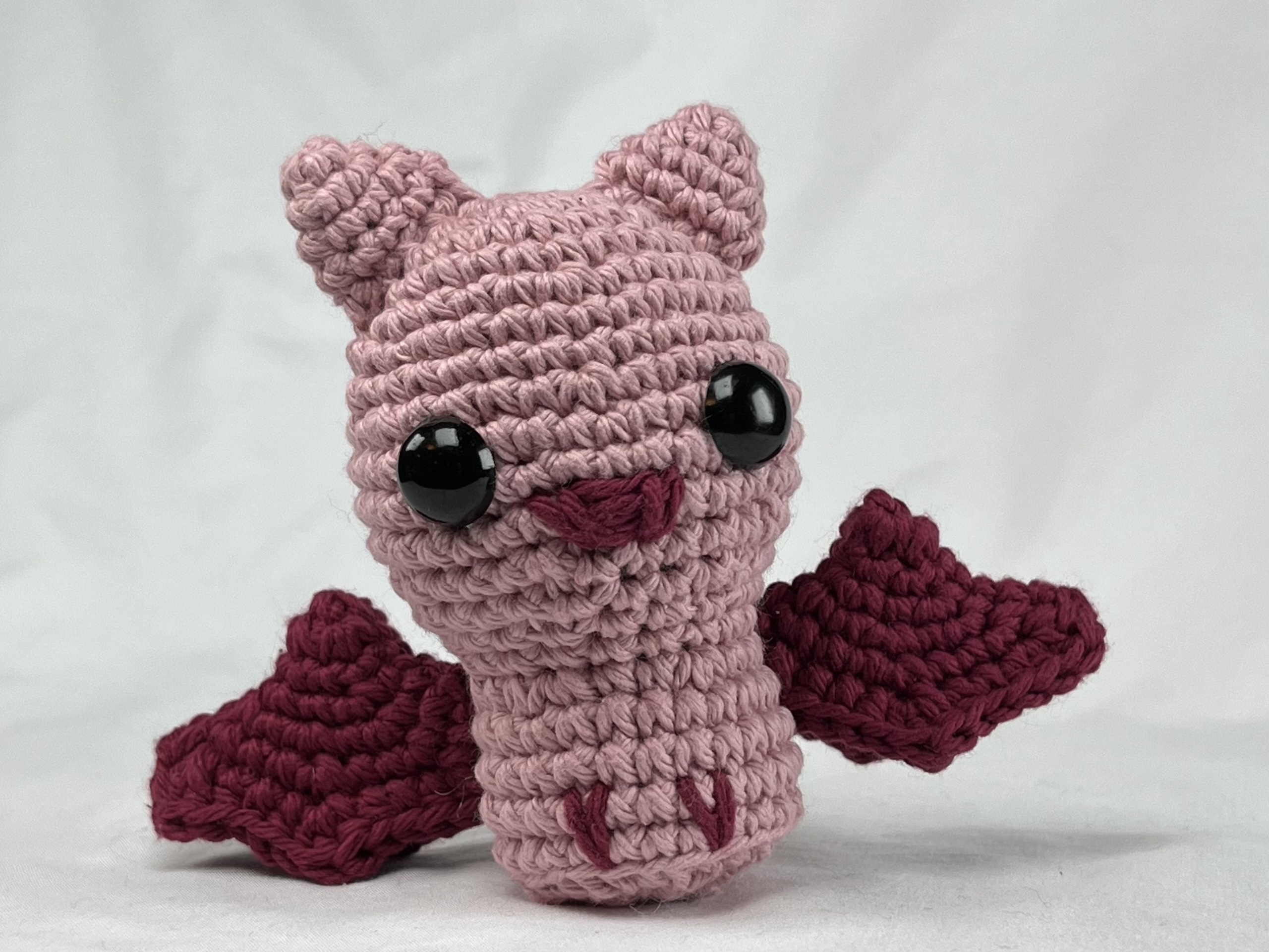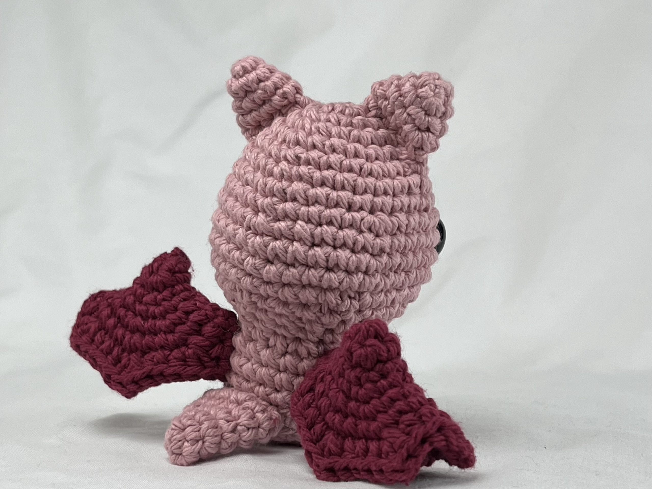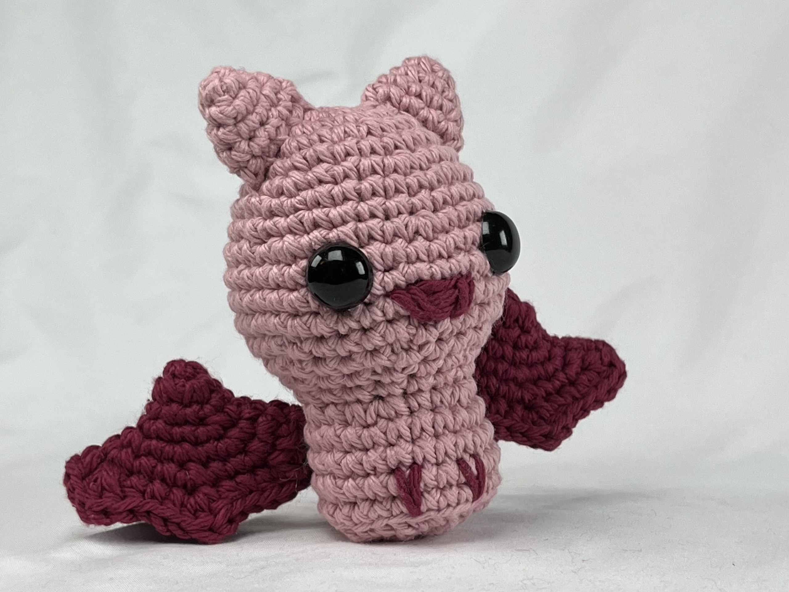 Meet Raven, one of the cuddliest members of the flock! This handmade amigurumi bat is crafted from soft, high-quality cotton yarn in a charming pink with striking rose wings. Whether you’re a bat lover (or a Bhat lover) or just looking for a unique gift, Raven is sure to steal your heart!